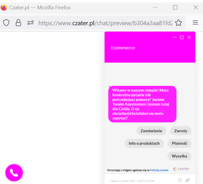 Jeżeli wszystko działa poprawnie, od tej pory klikając na przycisk ,,aktywność chatbota”, nasi klienci mogą się cieszyć szybkimi odpowiedziami na najczęstsze ich pytania.