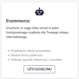 Z listy chatbotów wybieramy Ecommerce i klikamy na Użyj szablonu.