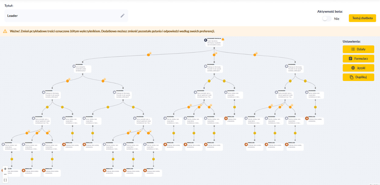 Następnie pojawi nam się duże drzewo złożone z pytań i odpowiedzi, które musimy skonfigurować według własnego uznania.