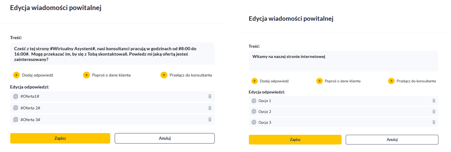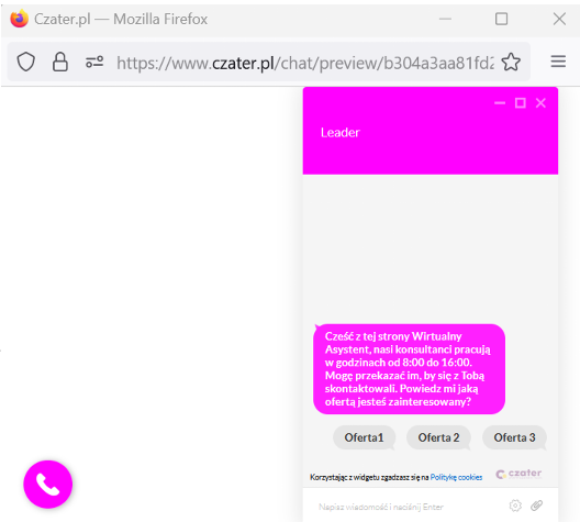 Kolejnym krokiem jest zamienienie reszty wartości, przetestowanie chatbota i uruchomienie go na stronie: