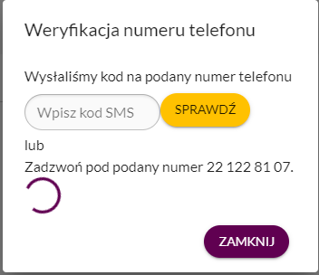 Następnie dokonujemy jego weryfikacji klikając na klawisz Aktywuj i wpisując otrzymany kod SMS.