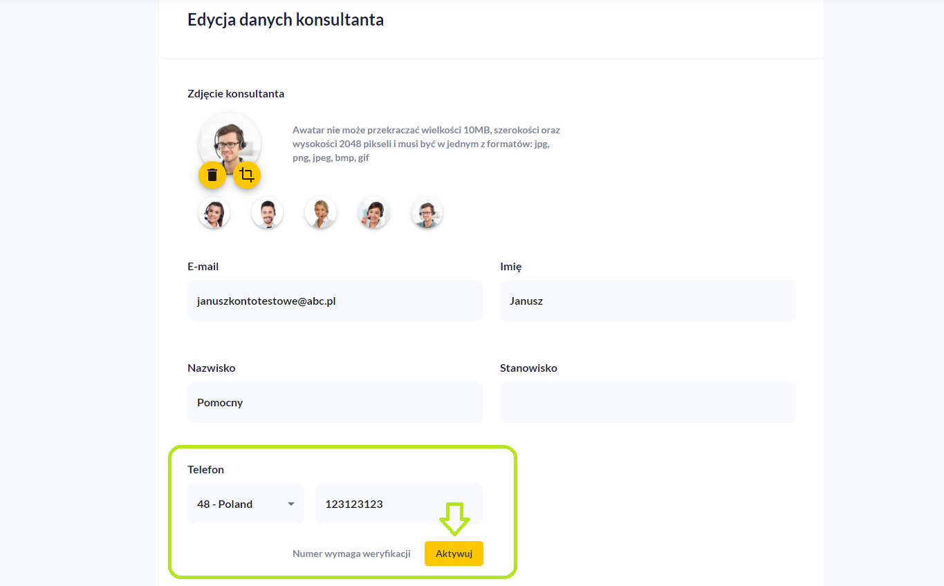 Z poziomu konta administratora możemy dokonywać modyfikacji i weryfikacji numerów naszych pracowników w analogiczny sposób. Wystarczy wejść do zakładki Pracownicy > Lista pracowników i kliknąć ikonkę ołówka przy danym konsultancie.