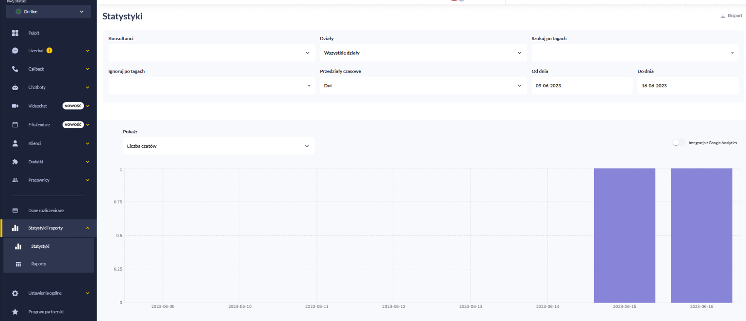 -Pokaż: określamy jakich czynności ma dotyczyć wykres, np. Liczba czatów, czas czatów, etc.